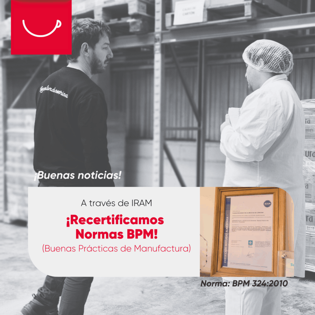 A fines de agosto tuvimos un proceso de auditoría a través de IRAM que incluyó una evaluación global de la Fundación Banco de Alimentos Córdoba, en la que se contempló: infraestructura, equipamientos, sistemas de calidad,servicios y transportes y también limpieza y desinfección.